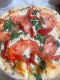 Fresh tomatoes, roasted red peppers, spinach & mozzarella cheese.With red or white sauce.